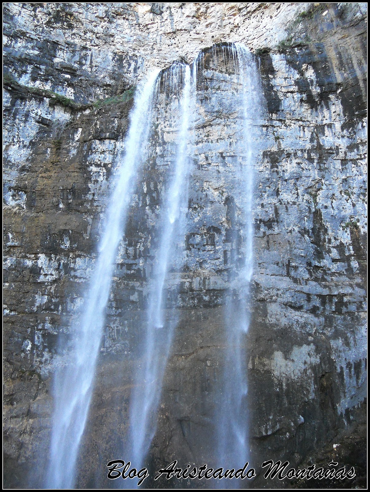 precipitan los chorros por un farallón de más de 300 m de altura. El volumen de