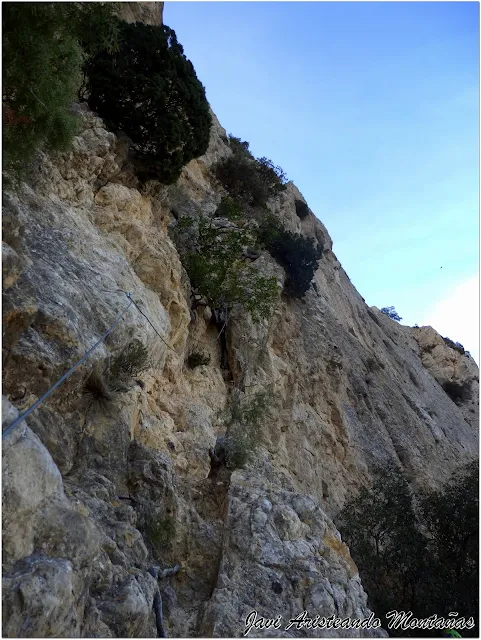 - Equipadores/ Equipación: Leandro Francisco Irles / Ferrata exigente con el material justo. En muchos casos hay tramos sólo con el cable de seguridad donde escalaremos IVº con manos y pies sobre la roca.